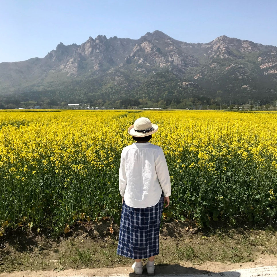 파란 하늘과 어우러진 노란색 유채꽃으로 나들이 분위기가 확 살아나요.