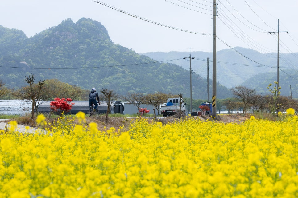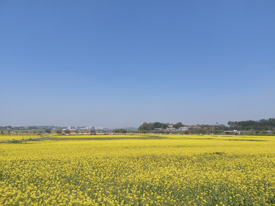 유채꽃이 드넓게 펼쳐진 풍경은 사진 찍기에도 제격이며, 누구나 쉽게 봄의 낭만을 즐길 수 있어요.
